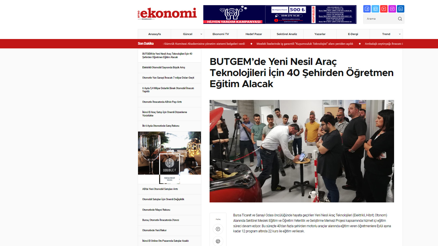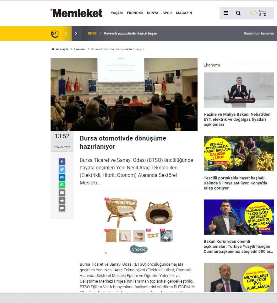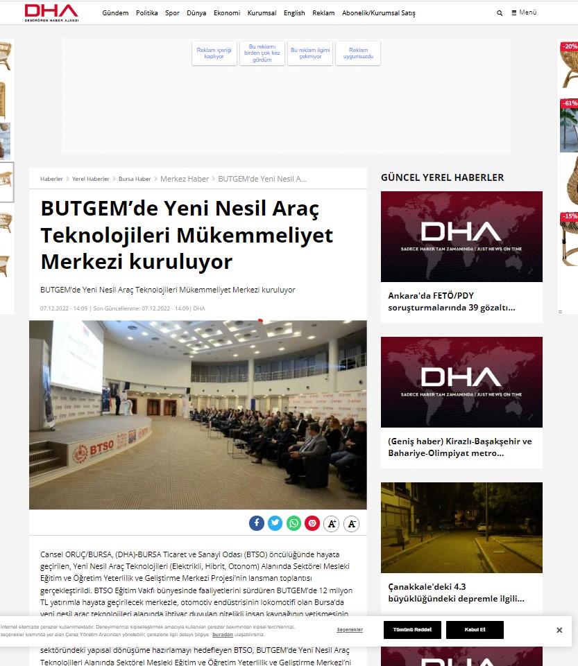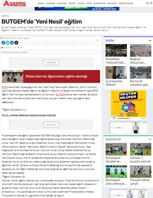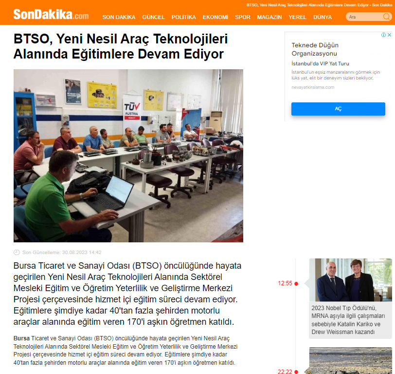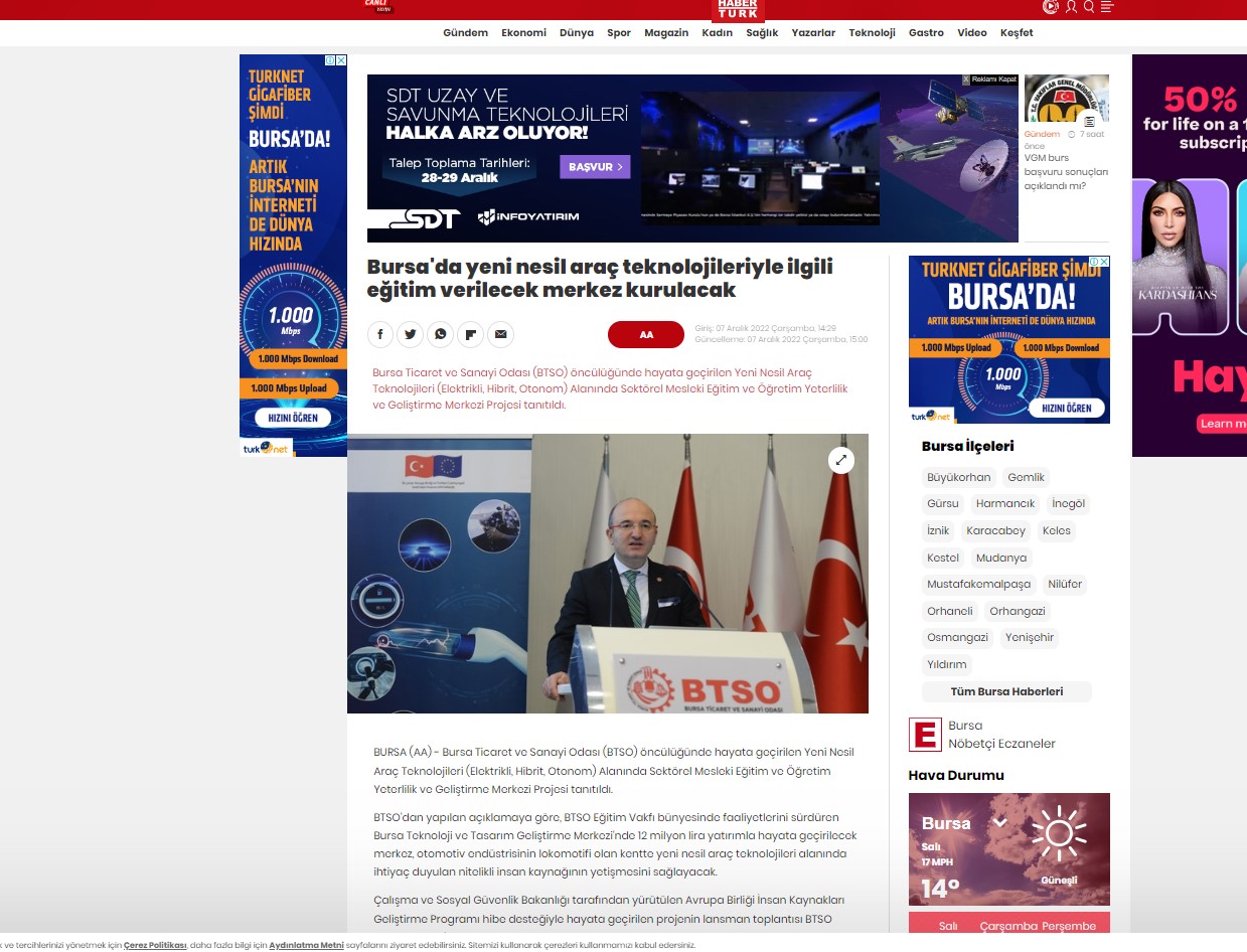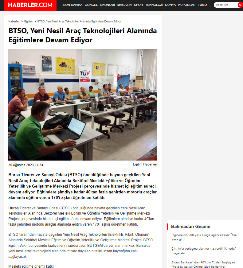 Bu proje, BTSO tarafından BTSO Eğitim Vakfı-(BUTGEM)’de Yeni Nesil Araç teknolojileri (Elektrikli, Hibrit, Otonom) alanında Sektörel Mükemmeliyet Merkezinin kurulması, mevcut eğitim altyapısının güçlendirilmesi, Yeni Nesil Araç teknolojilerine ait Hizmet içi eğitim programları ve eğitim materyalleri hazırlanması, Meslek öğretmenlerinin karma eğitim modeli ile kapasitesinin güçlendirilmesi ve Toplumda Mesleki eğitimin farkındalığını artıracak faaliyetlerin iş dünyası tarafından organize edilmesi ile kurumun mesleki eğitim paydaşları arasında işbirliği kapasitesinin artırılması amaçlanmaktadır.Proje ile BTSO Eğitim Vakfı – BUTGEM’de bu ihtiyaçlara yönelik Yeni Nesil Araç Teknolojilerine ait aşağıdaki konu başlıkları altında hizmetiçi eğitim programları gerçekleştirilecek ve Atelye ve laboratuvarlar kurulacaktır.